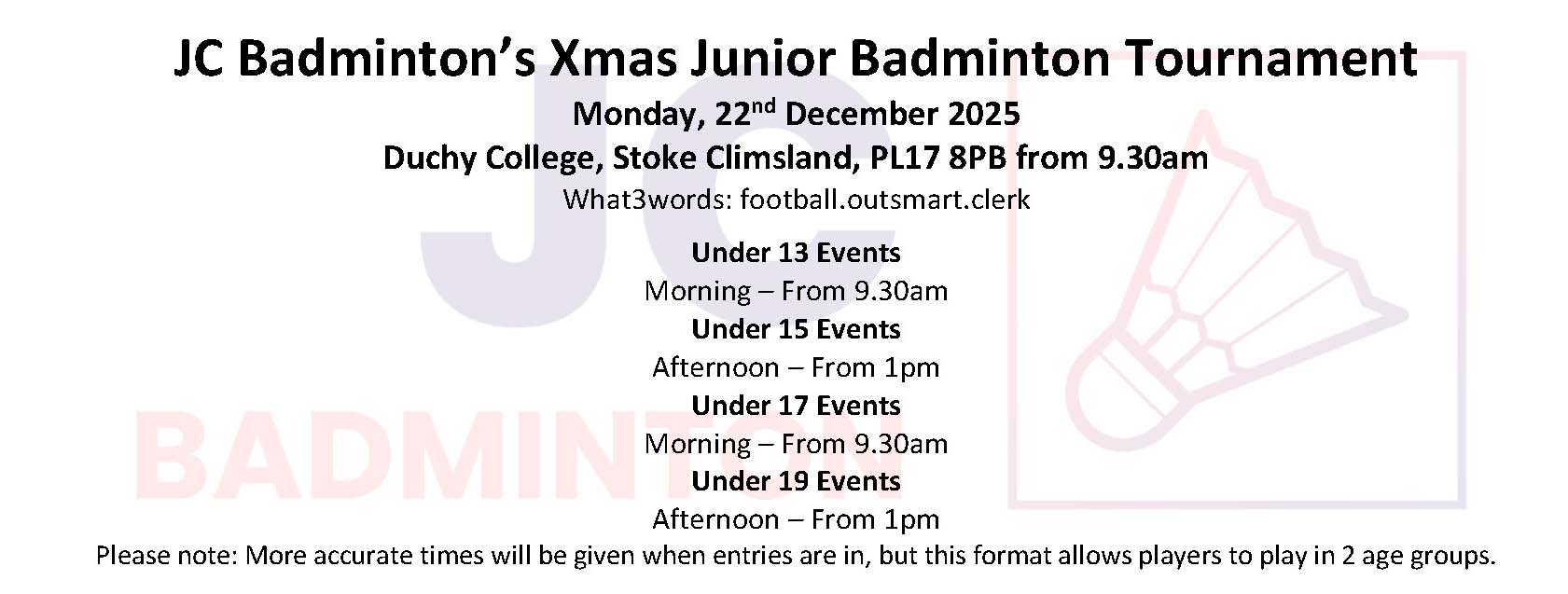 U13, U15, U17, U19 Age groups. Open to all juniors. Players can play in two age categories on the day in all the all 3 disciplines.