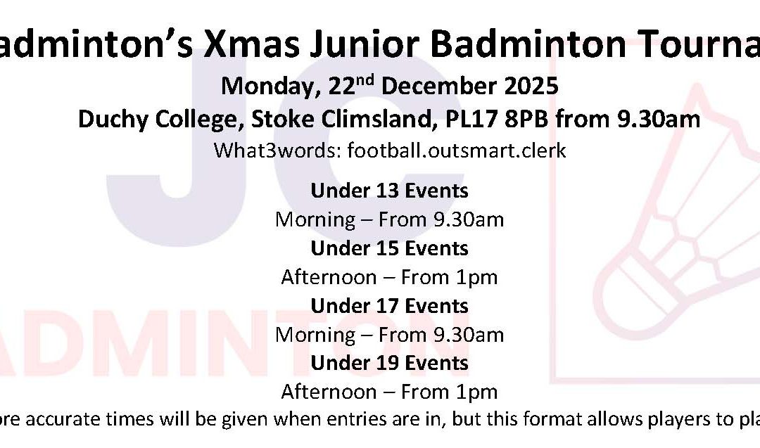 (Please note: More accurate times will be given when entries are in, but this format allows players to play in 2 age groups.)